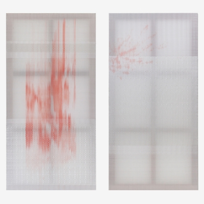 A monster, some called her. But in the shadows, only said in whispers, she was an angel in red.” Emory R. Frie, From Enchanted Forest In Japanese mythology, the color red (赤 – aka) holds deep significance. It is often associated with deities and forces of protection. For instance, **Kitsune** (fox spirits) are believed to be guardians, and they are sometimes depicted with red markings, symbolizing their supernatural power and connection to Inari, the god of rice and prosperity. In addition, red is linked to **the spirits of the dead**, as seen in festivals like Obon, where red lanterns guide the spirits back to their resting places. The transformative nature of red in these myths reflects both protection and the duality of life and death. In this video installation, the two pieces will merge, revealing an inky quality that embodies the depth of inner transformation. As they blend, we explore the shifting strength of red—how it can symbolize both fearsome power and serene beauty, inspiring a complex emotional experience that transcends the surface.
